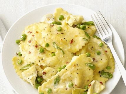 Recipes with similar ingredients: Artichokes, cream, garlic, pepper red cereal, peas, lemon zest, lemon juice, Agnolotti, ravioli, parmesan cheese, basil