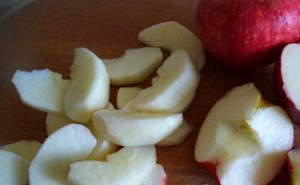 - Free fresh apples are removed from the core with with bones and cut into four parts.