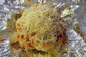 - Expand the foil, sprinkle with cheese, send bake more for twenty minutes.