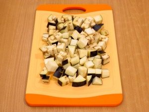 - Cut leek into thin half rings. Tomatoes and cut the squash into small pieces. Eggplant and sweet dice the pepper.