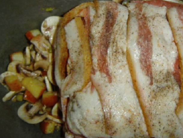- My veal tenderloin and dry it. Peeling meat with salt and wrap it in slices of bacon, for 20-30 minutes leave.