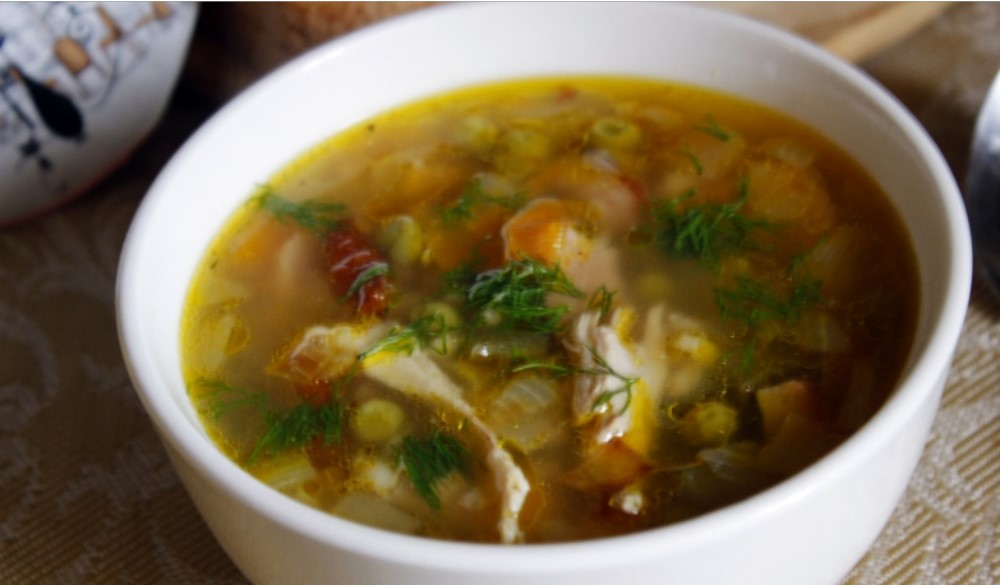 For lovers of spicy soups with sourness, this barley soup with peas and bacon, cooked at home. Soup thick, saturated and warming.