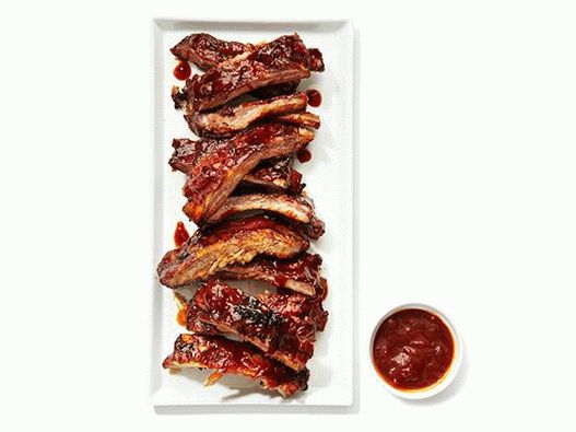- Spread ribs generously with cooked barbecue sauce. Close cover and continue cooking for another 20 minutes until they are are gagged. Put the ribs on a cutting board, leave on a few minutes before cutting them into separate sections. Serve with the sauce.