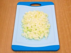 - Fry in a frying pan in warmed vegetable oil chopped onion and garlic.