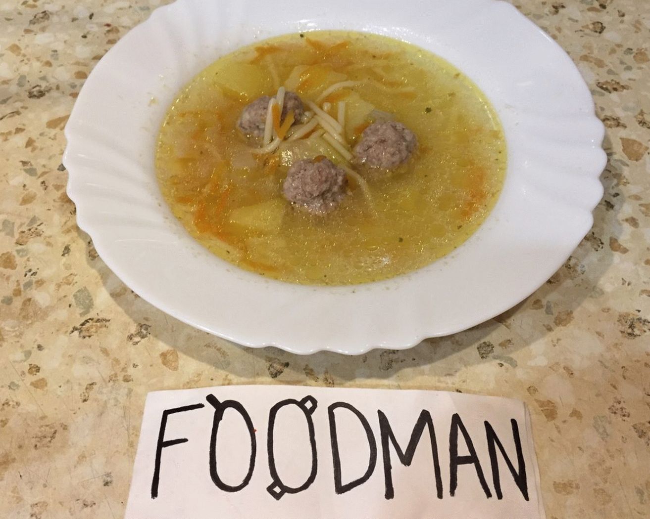 - Throw meat balls, frying and potatoes into the broth, cook 15 minutes then we fall asleep vermicelli.
