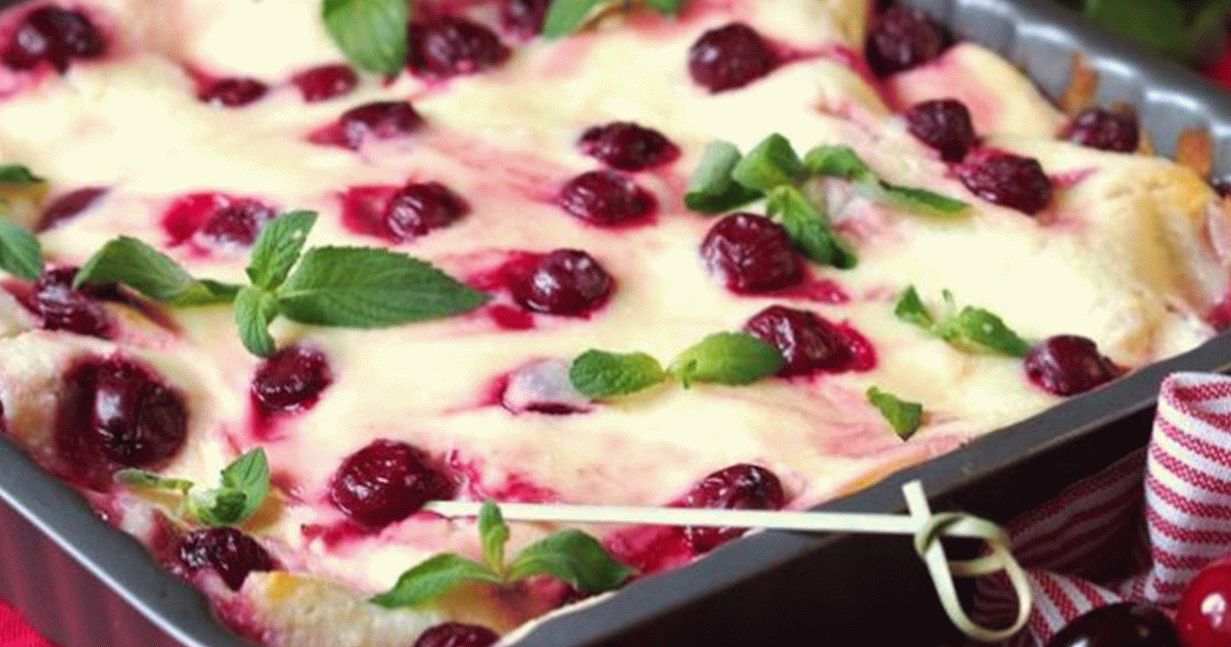 - In a baking dish lay layers of lasagna: dough, cottage cheese, berry puree. For the top layer instead of puree use whole berries.