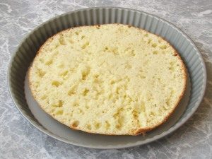 - Cut the prepared chilled cakes with a sharp knife into two parts.