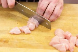 - Cut the meat with a medium cube, its thickness should be 2-3 cm.