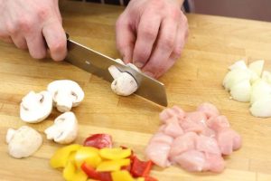 Bulgarian pepper, onion and mushrooms cut into about the same in size, like chicken fillet. It’s crucial to try to do identical pieces so that all ingredients have the same degree readiness.