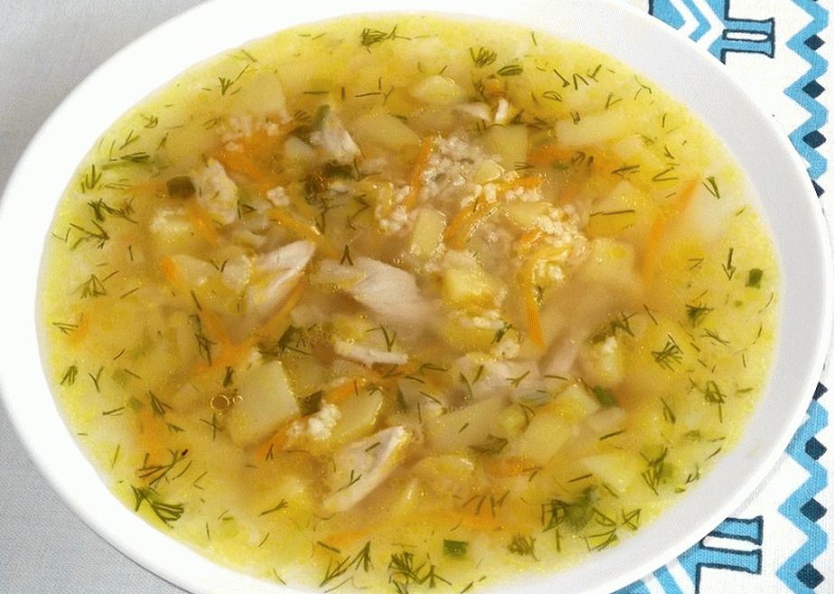 Put the frying in the soup, chicken, cook over low heat 10 minutes.
