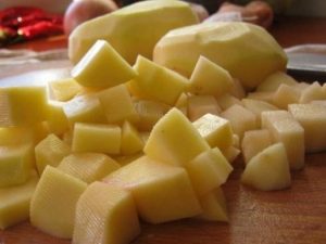 Peel potatoes, cut into large pieces and put in bouillon.
