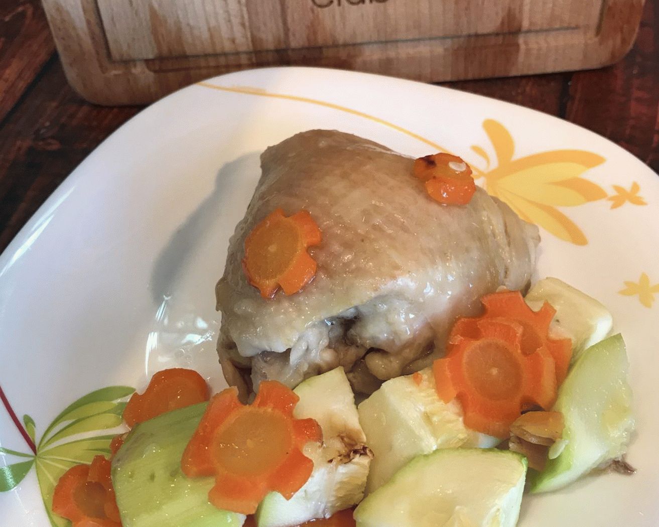 Very fast, tasty and easy. I cooked for my daughter and myself, so I don’t added a lot of spices and did not fry the crust, we both do not eat it. If you want to get a crisp chicken, after removing make the temperature of the foil 230 and pour juice and fat from it forms every 10 minutes.