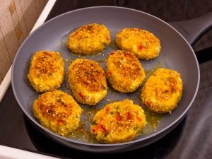 - Fry in preheated vegetable oil for seven minutes from each side.