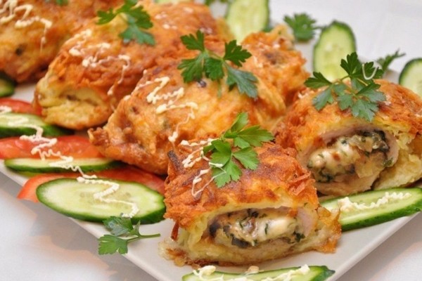 - Put the filling on the meat and form cutlets.