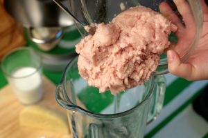 - Add salt and spices. We break through everything to a uniform condition. The mass should be without large fibers.