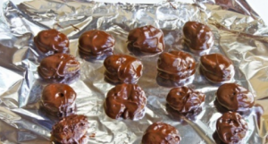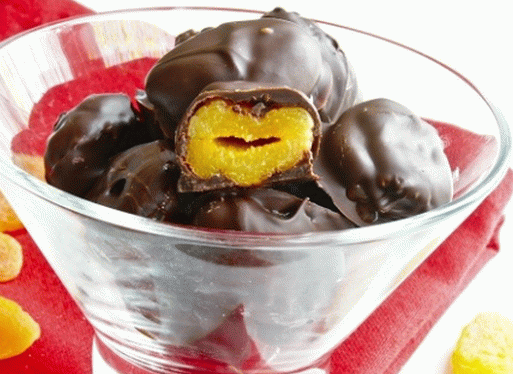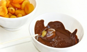 - Dried apricots hot melted chocolate, using a fork or a wooden skewer. Dip next to the sows.