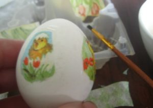- Boil hard-boiled eggs, fill with cold water, let cool. Dry them with a napkin or paper towel. From a mixture of water and boil flour paste.