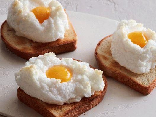 In the morning to cheer yourself up and your household, make the sun in the clouds for breakfast. For this funny scrambled eggs no additional ingredients are needed other than the eggs themselves. Only 20 minutes of your time and on the table creative and challenging smile breakfast. Such fried eggs are cooked in the oven. At first clouds of whipped proteins are baked, and then laid out in them the yolk and again everything is baked, but so that the middle remains liquid. So that the scrambled eggs turned out spectacular, it is important to carefully separate the yolks от белков и не повредить их.