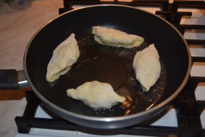 - Turn the pies over, fry them on the sides.