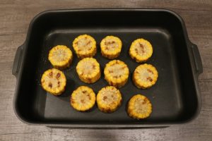 - Slices of corn well greased with butter and salt with all sides.