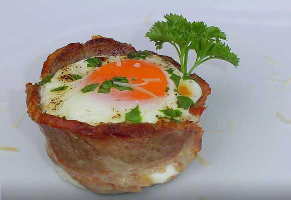 An interesting recipe for delicious and original fried eggs houses in ham baskets. Simple and very appetizing in serving the dish can be made for breakfast.