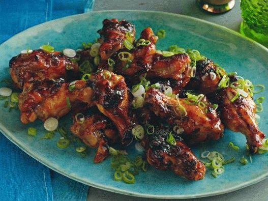 Make chicken wings according to one of the most successful recipes. Pre-marinate them in a mixture of barbecue sauce, mustard and honey, then grill and cover with mustard honey with icing. The wings are juicy and tender, covered crispy crust with a sweet-piquant taste. Serve them to beer or lunch with various side dishes and they will become real hit on any holiday table or in the daily menu. с друзьями:
