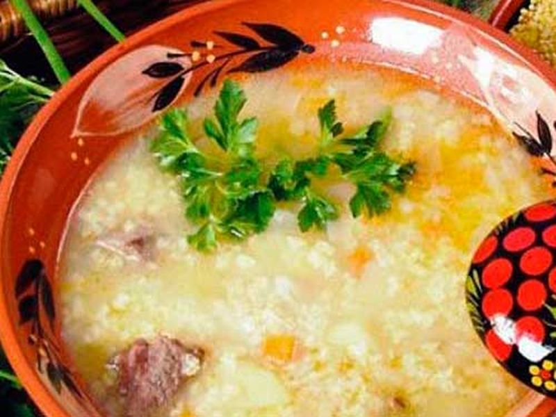 - In the pan put washed millet, onions with carrots and fried offal. Pour in the broth in which the ventricles were boiled, add a liter water.