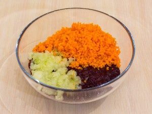 - Scroll onions, carrots, and liver through a meat grinder.