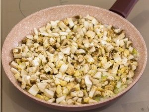 - For sauce – lightly fry in a pan with vegetable oil chopped onions, put chopped mushrooms, fry, stirring still 15 minutes, salt, pepper to taste.