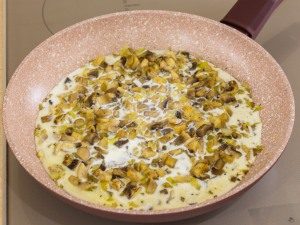 - Pour cream, as it boils, remove from heat.