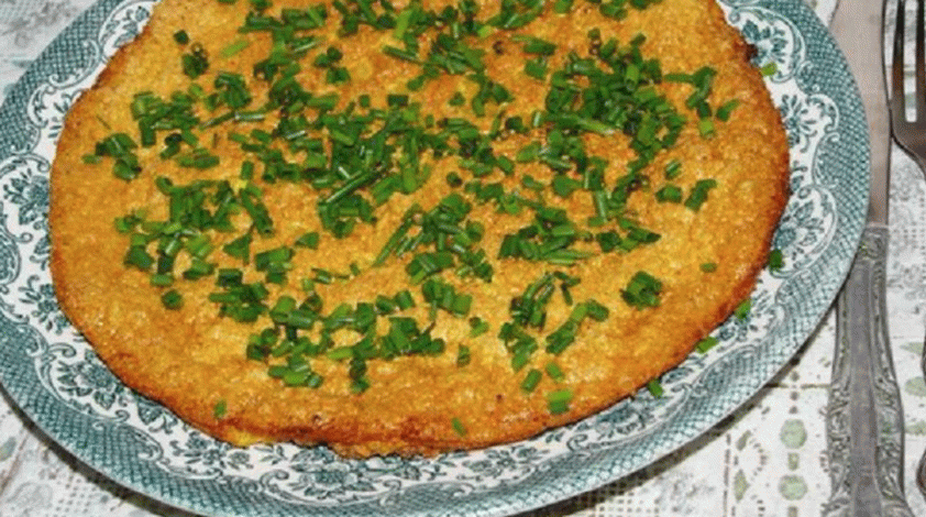 - Put the finished omelet on a dish and sprinkle it with a beam.