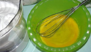 - Separate the whites from the yolks. Squirrels with a pinch of salt, beat in strong foam, and also mix the yolks with a whisk.