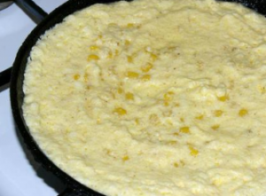 - In a heat-resistant form or pan, melt the creamy oil. Mix the corn with the eggs and put everything in a mold.