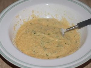 - Beat eggs lightly with salt and oil. Add semolina and mix well, and then chopped parsley.