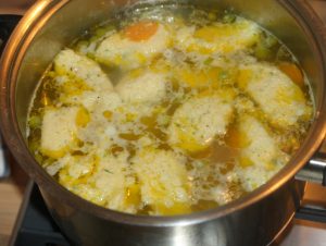 - We form dumplings from the dough and lower them with a spoon into the soup. Cook for about 10 minutes, and then turn off the heat and let stand still 5-10 minutes.