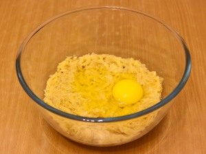 - Grind peeled potatoes in a bowl through a fine grater. Drive in an egg.