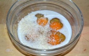 - In a bowl, beat the eggs with milk, grated cheese, salt and pepper.