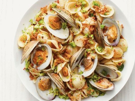 Pasta with clams and broccoli – a detailed recipe preparations. Nutritional value of one serving: (4 total) Calories 570, total fat 22 g., saturated fat g., proteins 2one g., carbohydrates 72 g., fiber g., cholesterol mg., sodium mg., sugar g. Share with друзьями: