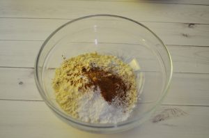 - We spread the dough in a silicone mold, spread it on top chopped pears, sprinkle with cinnamon, send to the preheated oven for 40 minutes. We set the temperature to 180 degrees.