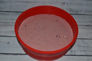 - The remaining cottage cheese is mixed with a blender with 170 g of plum puree, egg, sweetener and corn starch.