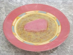 - Beat the egg, mix with mustard, salt.