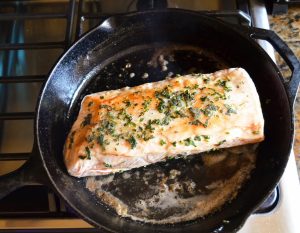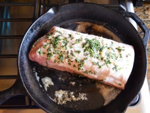 Fried loin in a cast iron pan is sent to the oven and bake at 190 degrees 40 minutes.