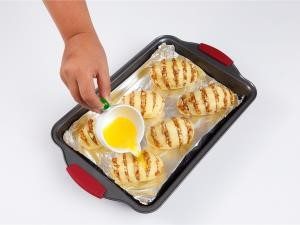 - In each incision, lay out the filling.