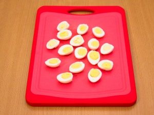 - Hard-boiled quail eggs cut in half (chicken on four parts).