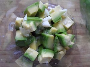 - Peel the avocado, put the slices of pulp into the bowl blender. Add garlic, lemon juice and oil to them. We are breaking through to a pasty consistency.