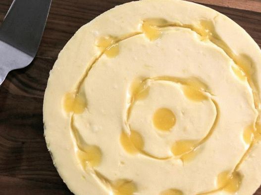 - Set aside 1/4 tbsp. lemon kurd for topping. Silicone Using a spatula, mix the remaining lemon kurd into the cheesecake mixture. Put the mixture on top of the cooled cake and evenly distribute it, so that the surface is flat. Lightly tap the mold on the table to level the cheesecake.