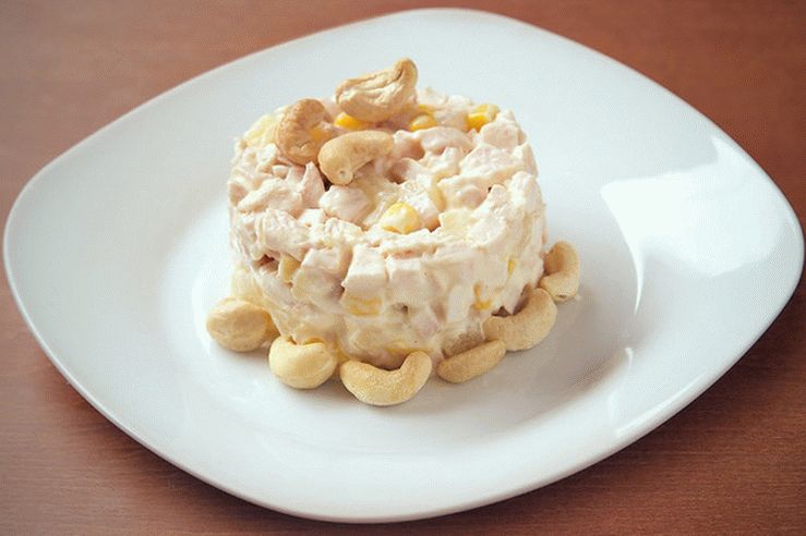 - Put the fillet, pineapple and onion in a deep bowl, all mix. Then add the corn, season with mayonnaise, mix. You can also salt and pepper to taste.