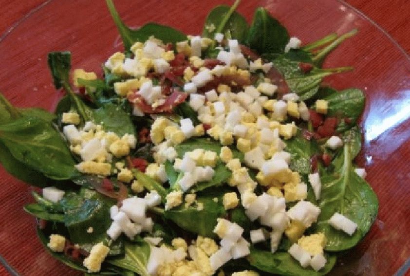 In the midst of the season, delicious and fresh herbs and vegetables be sure to seize the moment and cook at home delicious salad with spinach and egg! It is done very quickly, in just Fifteen minutes! The salad combines all the ingredients perfectly, the salad turns out to be quite satisfying and also very bright.