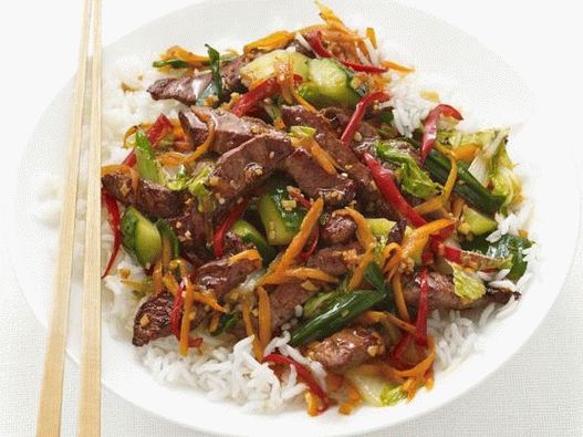 Thinly sliced across the fiber, the steak is a great ingredient. for a hearty and tasty Asian dish cooked using the technique Stir fry, when all the vegetables and meat are fried with frequent stirring high heat. So vegetables keep their crispness and bright appetizing color, and the meat becomes juicy. Dark soy sauce sesame oil and ginger are essential ingredients that give the dish a unique Asian flavor. Serve Stir Fry With boiled rice and enjoy. Nutrition value per serving: (total 4) Calories 390, total fat 10 g., Saturated fat g., Proteins 21 g., carbohydrates 54 g., fiber g., cholesterol mg., sodium mg., sugar g.