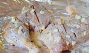 - Rub the resulting marinade into the legs on all sides and in the cuts we made. Leave to marinate for half an hour, do not cleaning in the refrigerator.
